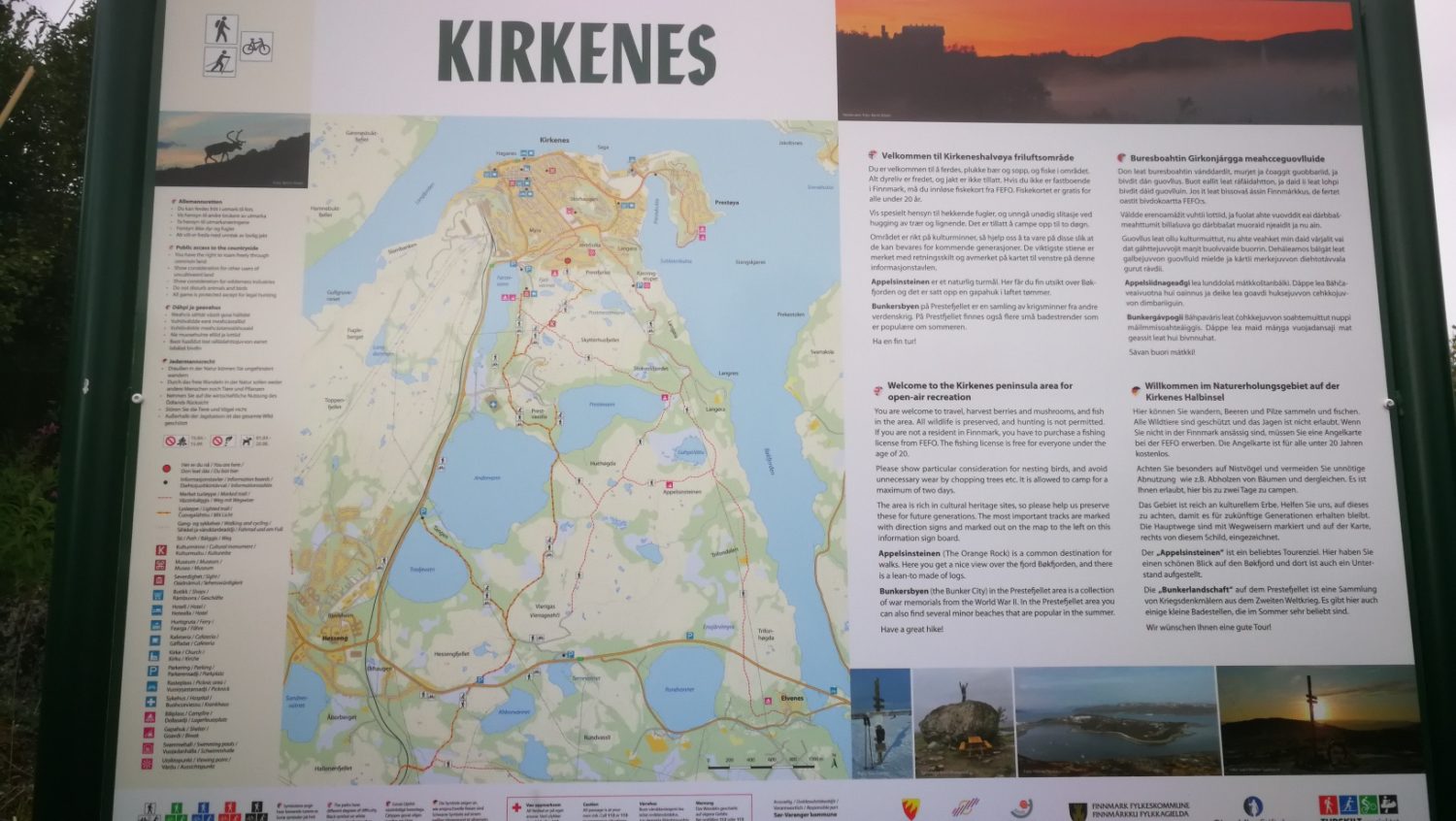 Sør-Varanger Kommune er yppelig for vandring. Det finnes merkede stier både nært Kirkenes som du kan starte uten å behøve bil. Kirkenes halvøya har et flott tur terreng. Også Pasvikdalen og Jarfjord byr på flotte turer. Skal du på litt mer krevende toppturer så anbefaler vi en tur til Øretoppen eller Gáranasčohkka, høyeste fjell i Sør-Varanger Kommune. For turer går inn på: Perleturer eller på Ut.no